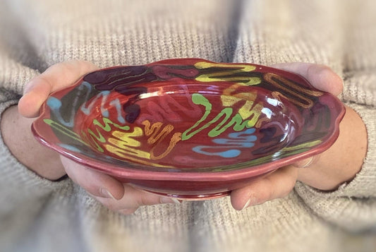 Red Craze Carved Rim Bowl