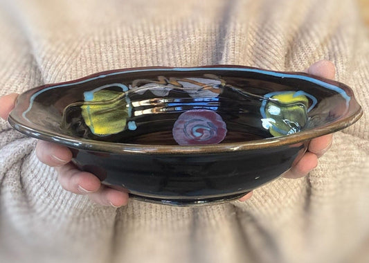 Midnight Tulip Carved Rim Bowl
