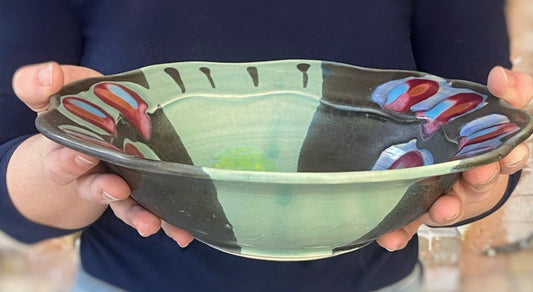 Green Black Carved Rim Bowl
