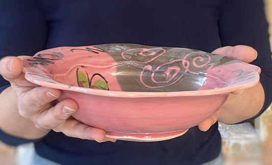 Pink Poppy Carved Rim Bowl
